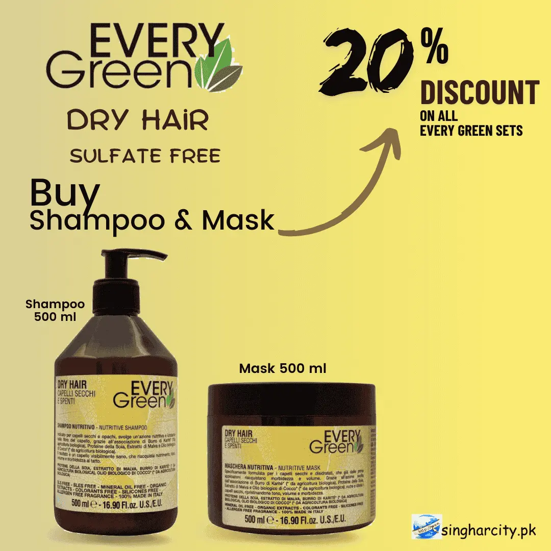 Every Green is an Italian professional haircare brand known for eco-friendly, plant-based formulas. The Dry Hair range ensures long-lasting hydration, making it the perfect solution for dry and dehydrated hair.